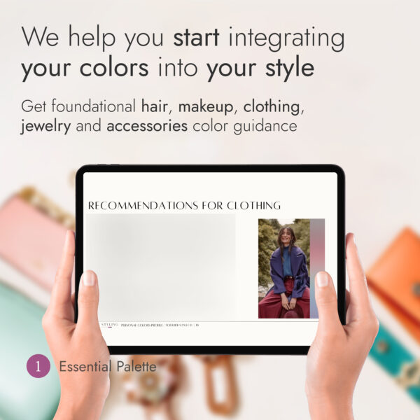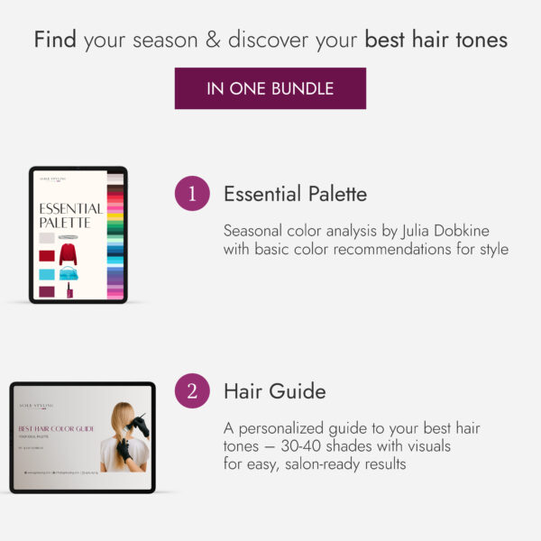 This service combines your personalized Essential Palette with the Hair Guide, giving you a unified roadmap for every color choice – from wardrobe to salon chair.