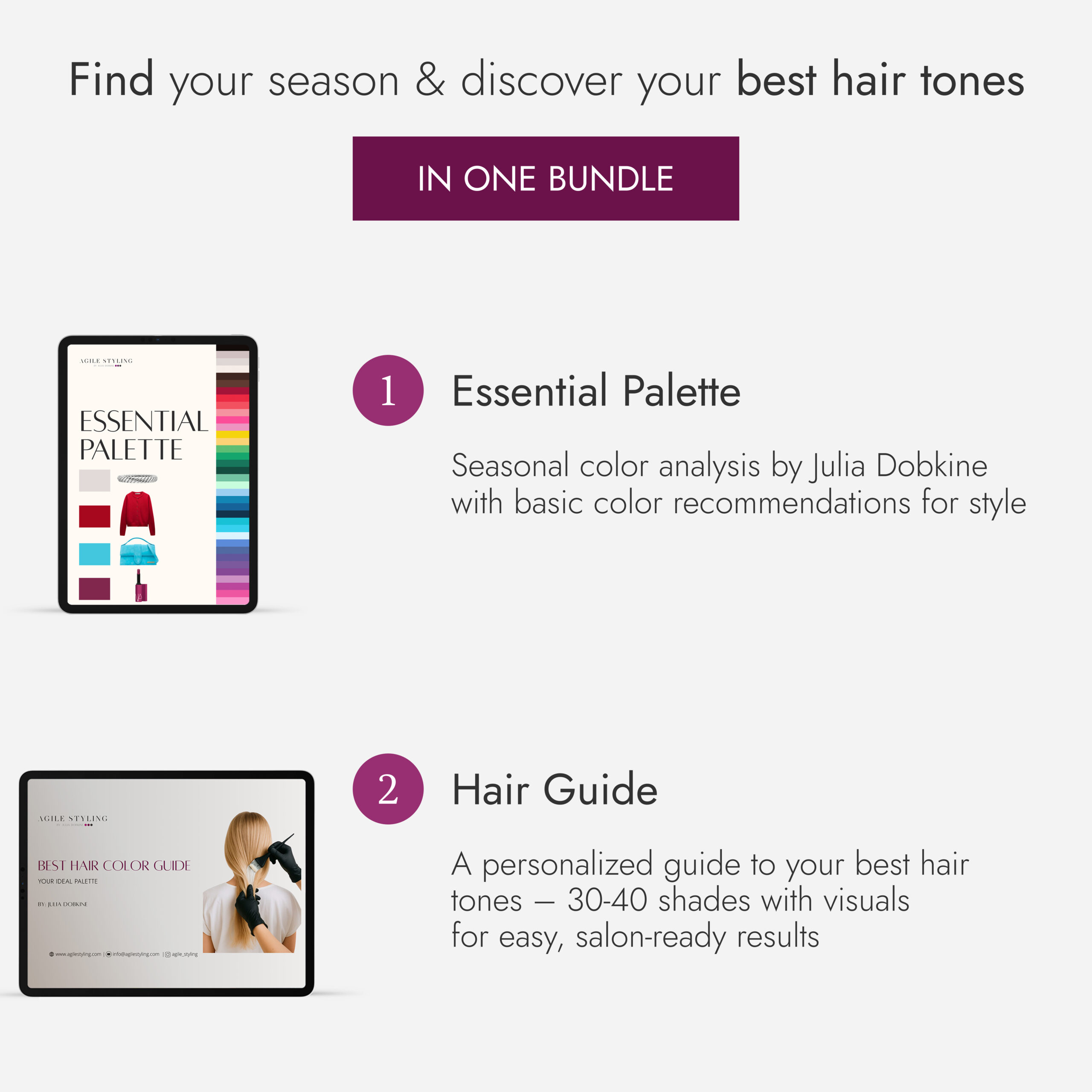 Discover the colors that make you shine from head to toe with the Essential + Hair Guide Bundle.