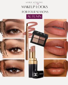 Think muted blushes, soft browns, neutral peaches, and soft autumn lipstick shades that enhance rather than compete.