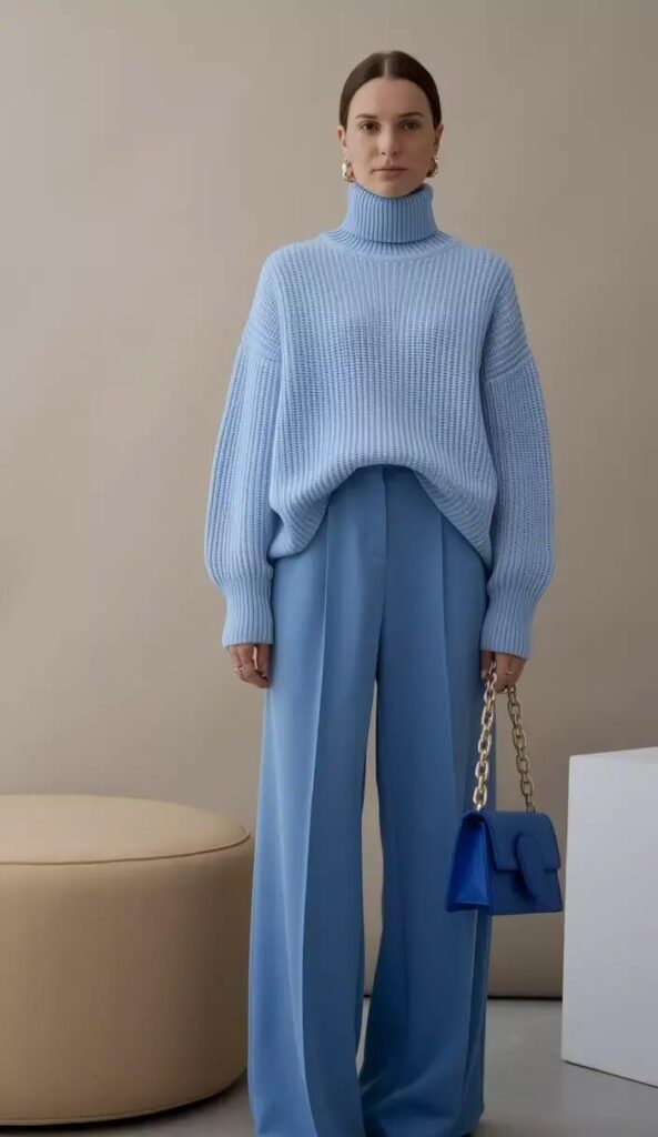 If you are True Summer, high-contrast outfits are not your strength. Balance and cohesiveness are your best choices.